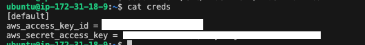 2. Create a credential file on the machine that fluentBit can read from. For example, `/home/<username>/creds` . Inside the file please paste the following config with your specific access key/id